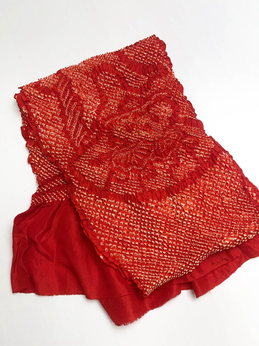 Rank A+ Coral Red Color Silk Obiage/ Good Condition/ 13A