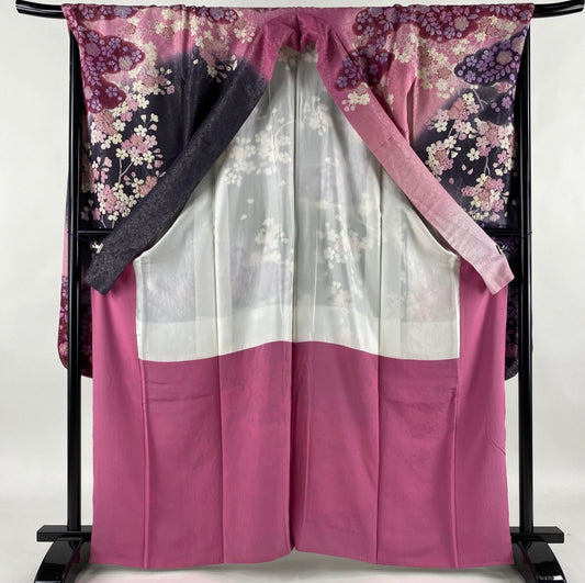 Rank A+ Japanese Vintage SIlk Sakura Pink Furisode Kimono, B35