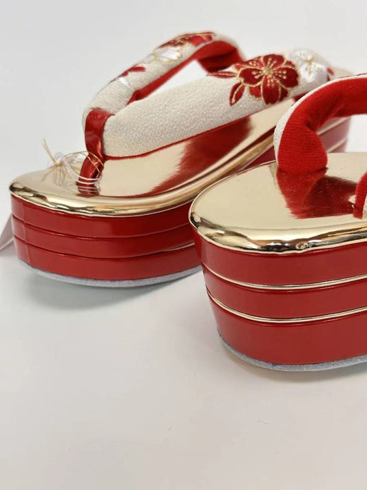 Red & Gold Luxurious Zori , Kimono Sandal, M/L size, Suitable for EU36-41