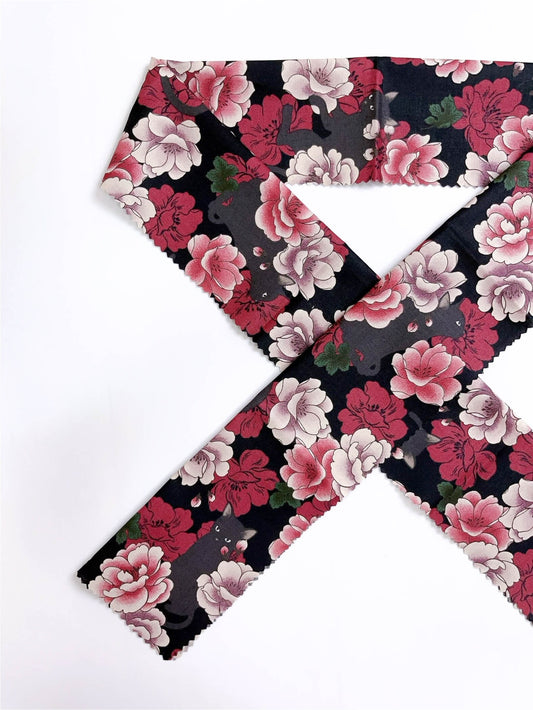Black Cat & Peony Pattern Han-eri Collar, Japanese Han-eri Collar