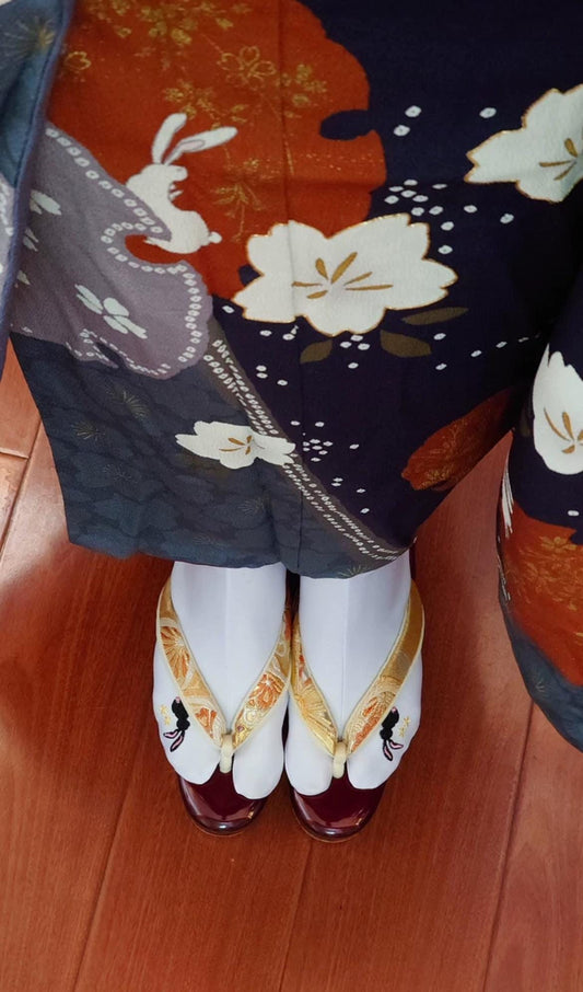 Flexible Tabi Socks, Polyester White Tabi Socks with Embroidery, EU34-35/36-39