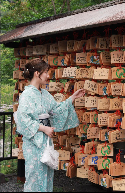 Japanese Floral Yukata Set with Easy Wearing Obi, JL019