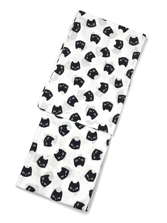 Cat Pattern Cotton Yukata Set, Obi Belt, Obijime & Sandals, Custom Fit Available