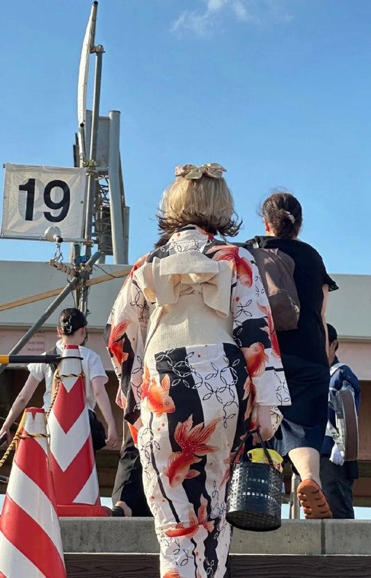Japanese Goldfish Yukata with Tsuke Obi (Optional), Women Yukata Kimono, Traditional Yukata