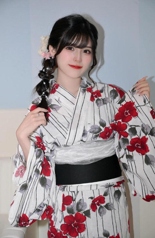 Japanese Floral Yukata Set with Easy Wearing Obi, H0020