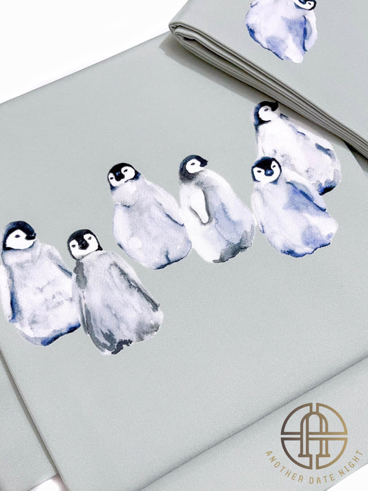 Pastel Green Pre-tied Nagoya Obi: Penguin Print, Easy Kimono Belt, Tea Ceremony