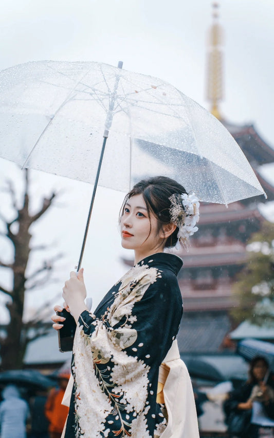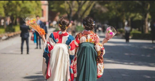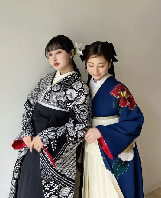 Women's Kofurisode & Hakama Skirt 5PCS Set, Women Graduation Kimono with Kimono Juban, Haneri, and Hanhaba obi