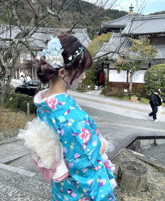Tulip Komon Kimono, Floral Blue Kimono