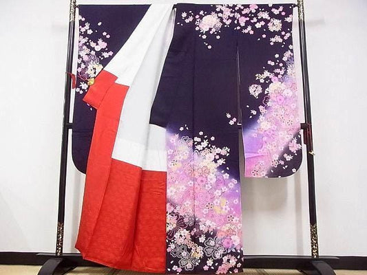 Rank A+ Vintage Furisode Kimono with Butterflies Pattern