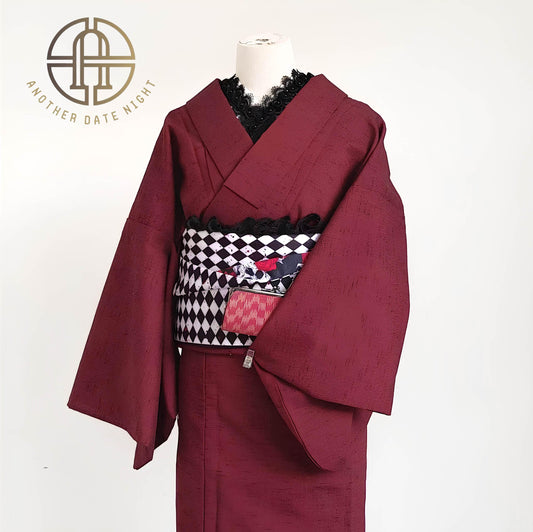 Rabbit Camellia Hanhaba Obi Belt: Purple & Wine Red, Double Sided