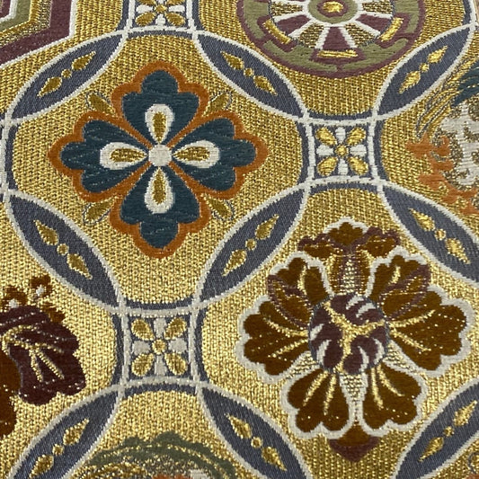 Floral Silk Fukuro Obi: Japanese Vintage Kimono Belt (Rank A)