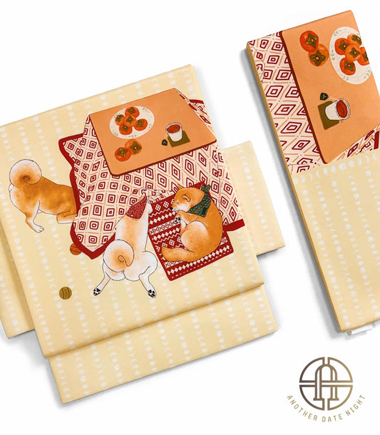 Shiba Inu Pre-Tied Taiko Knot, Easy Wear Nagoya Obi, Two-Side Sash