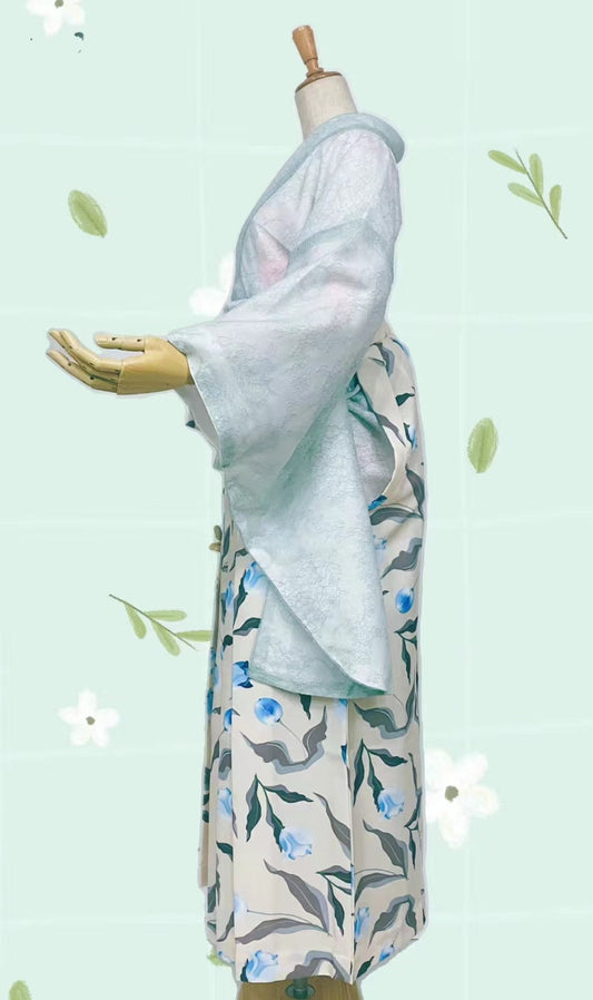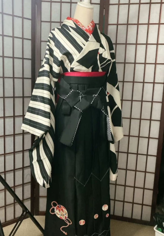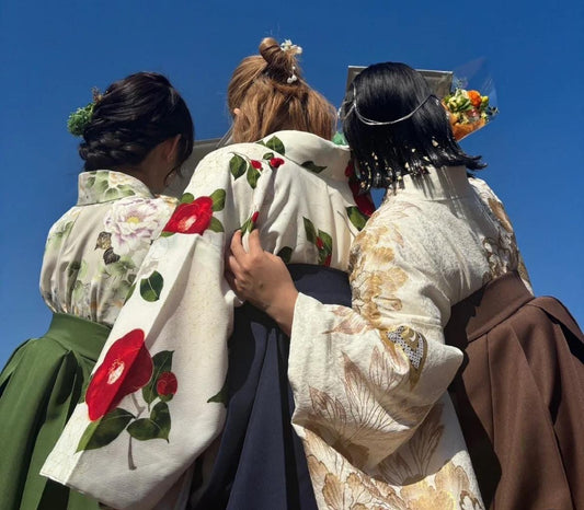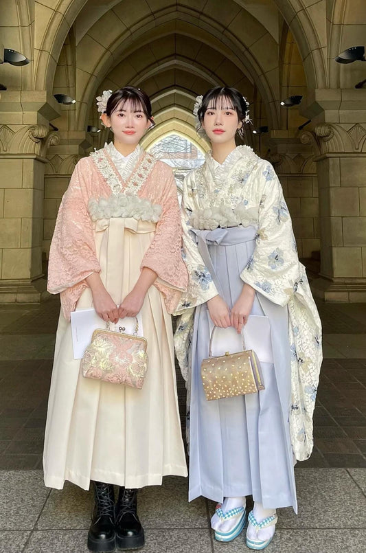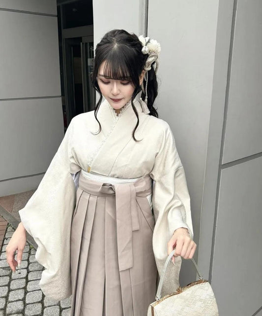 Women's Kofurisode & Hakama Skirt 5PCS Set, Women Graduation Kimono with Kimono Juban, Haneri, and Hanhaba obi