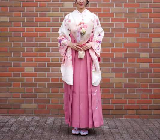 Traditional Women's Hakama, Hakama Skirt, Pink Hakama with Sakura Embriodery