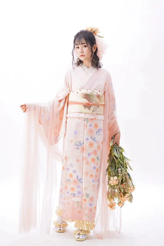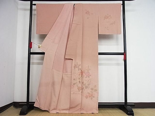 Unused Pink Floral Houmongi Kimono/ Polyester Kimono Women