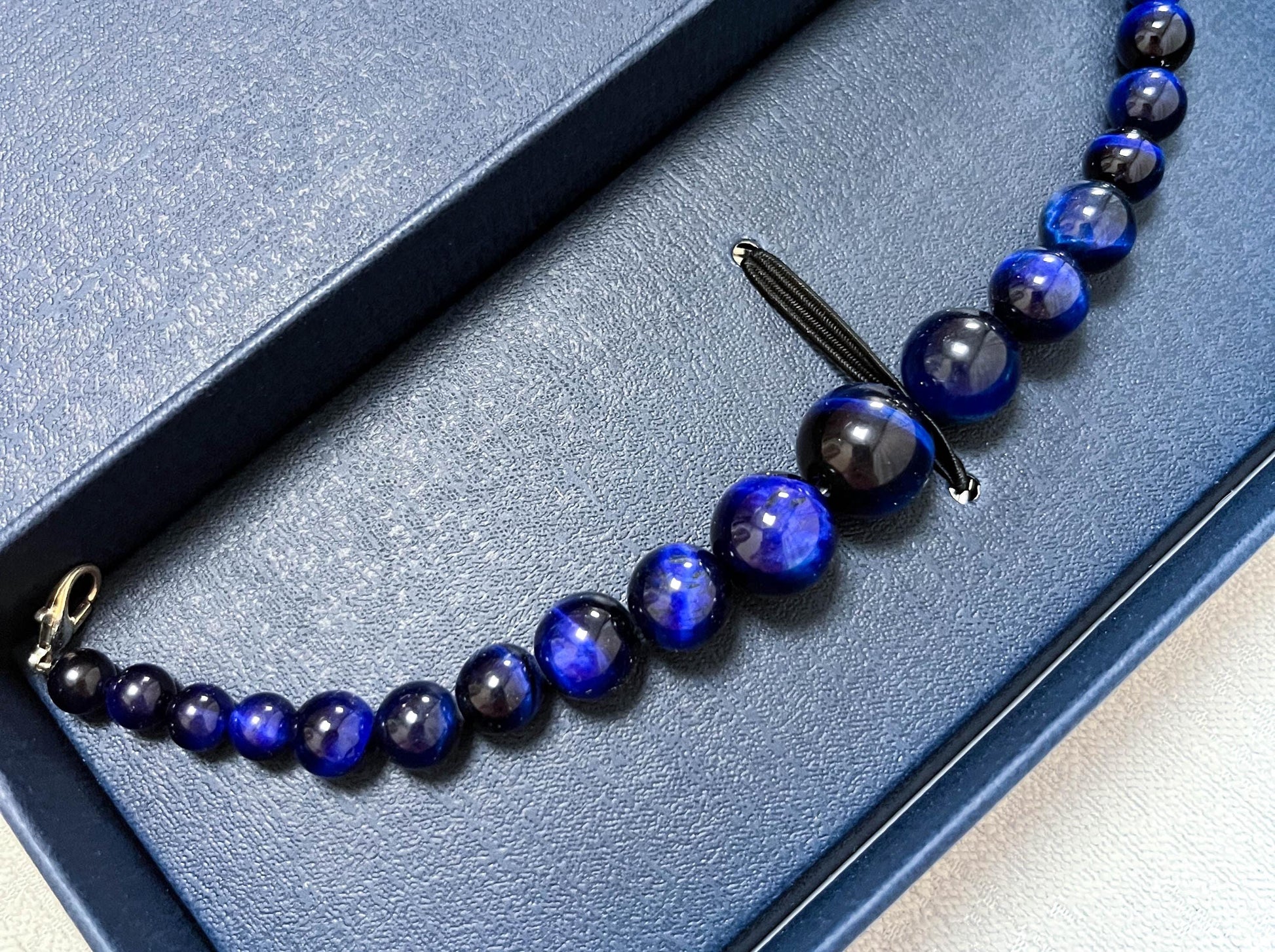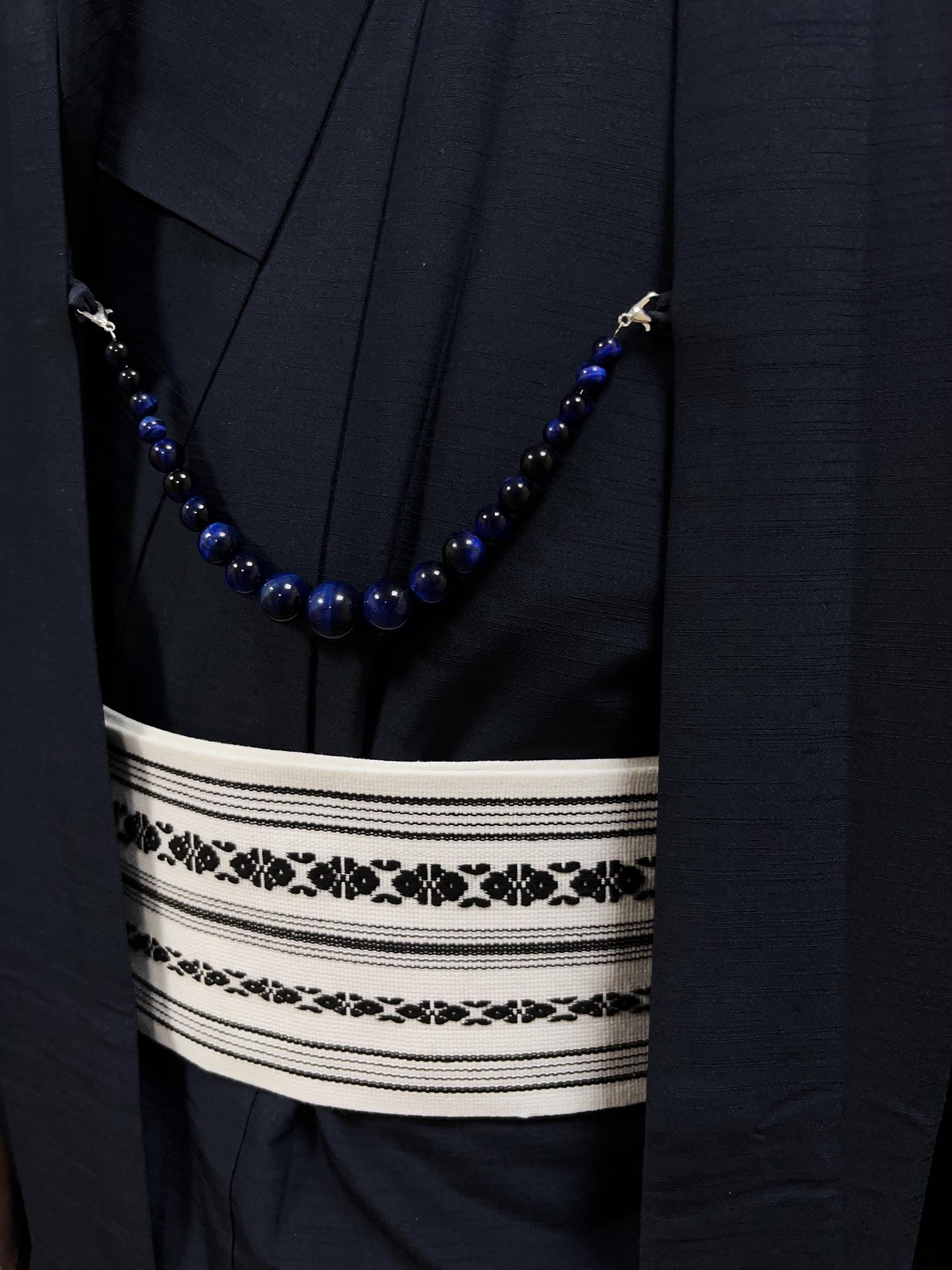 Blue Tiger's Eye Beaded Haori Himo: Kimono Accessory (19.5cm)