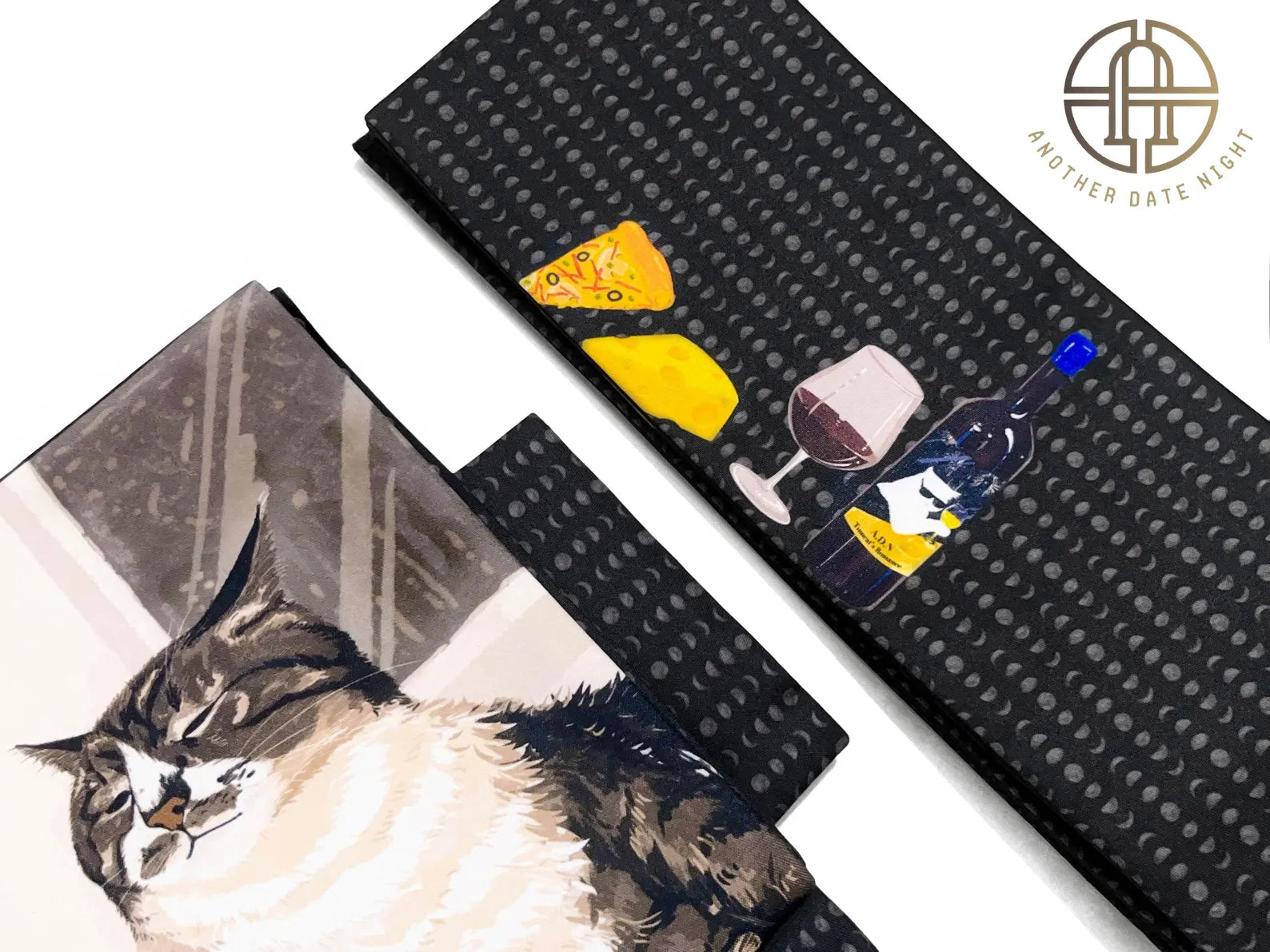 Red Wine World-Weary Cat, Easy Wear Obi, Pre-Tied