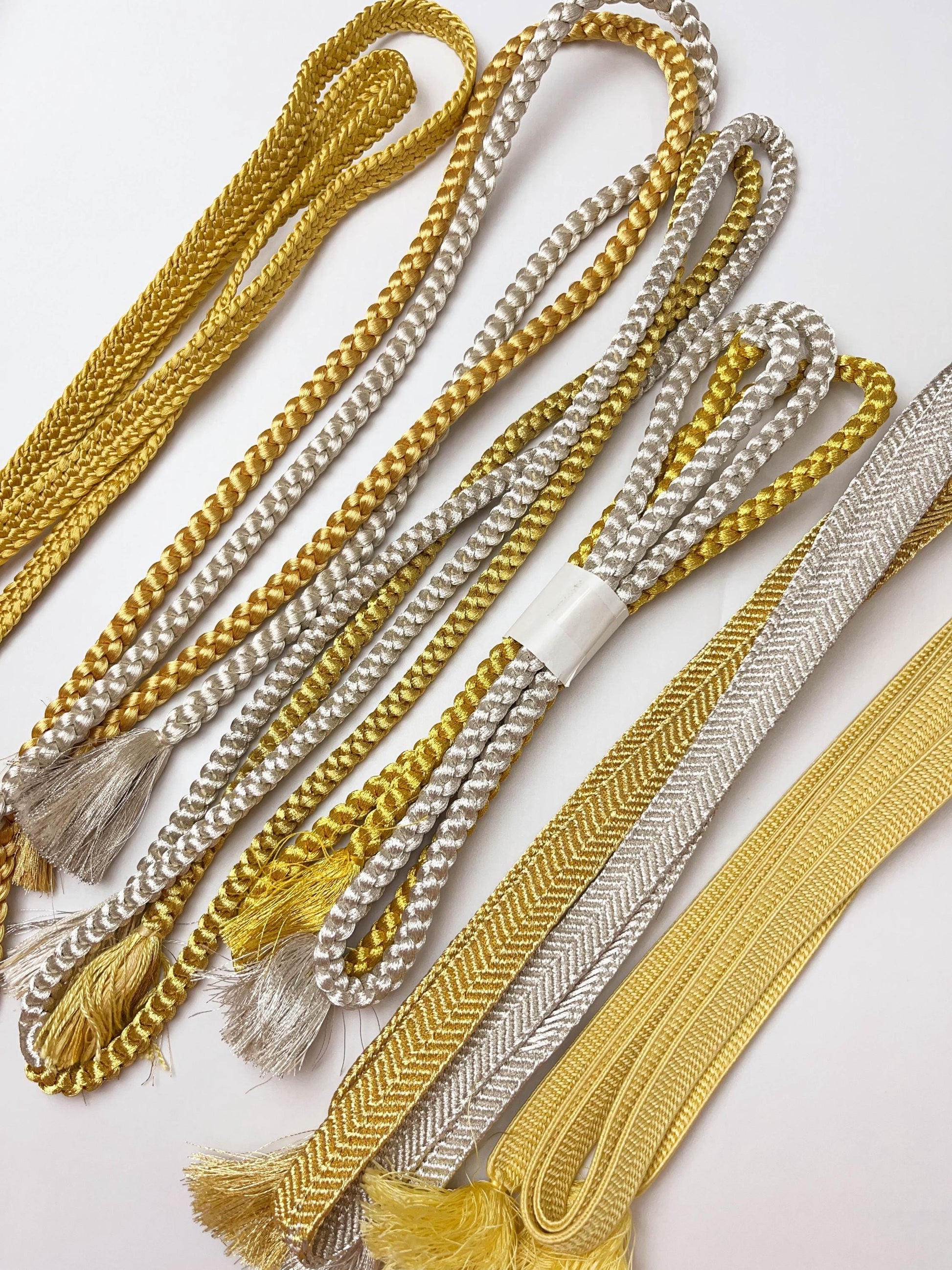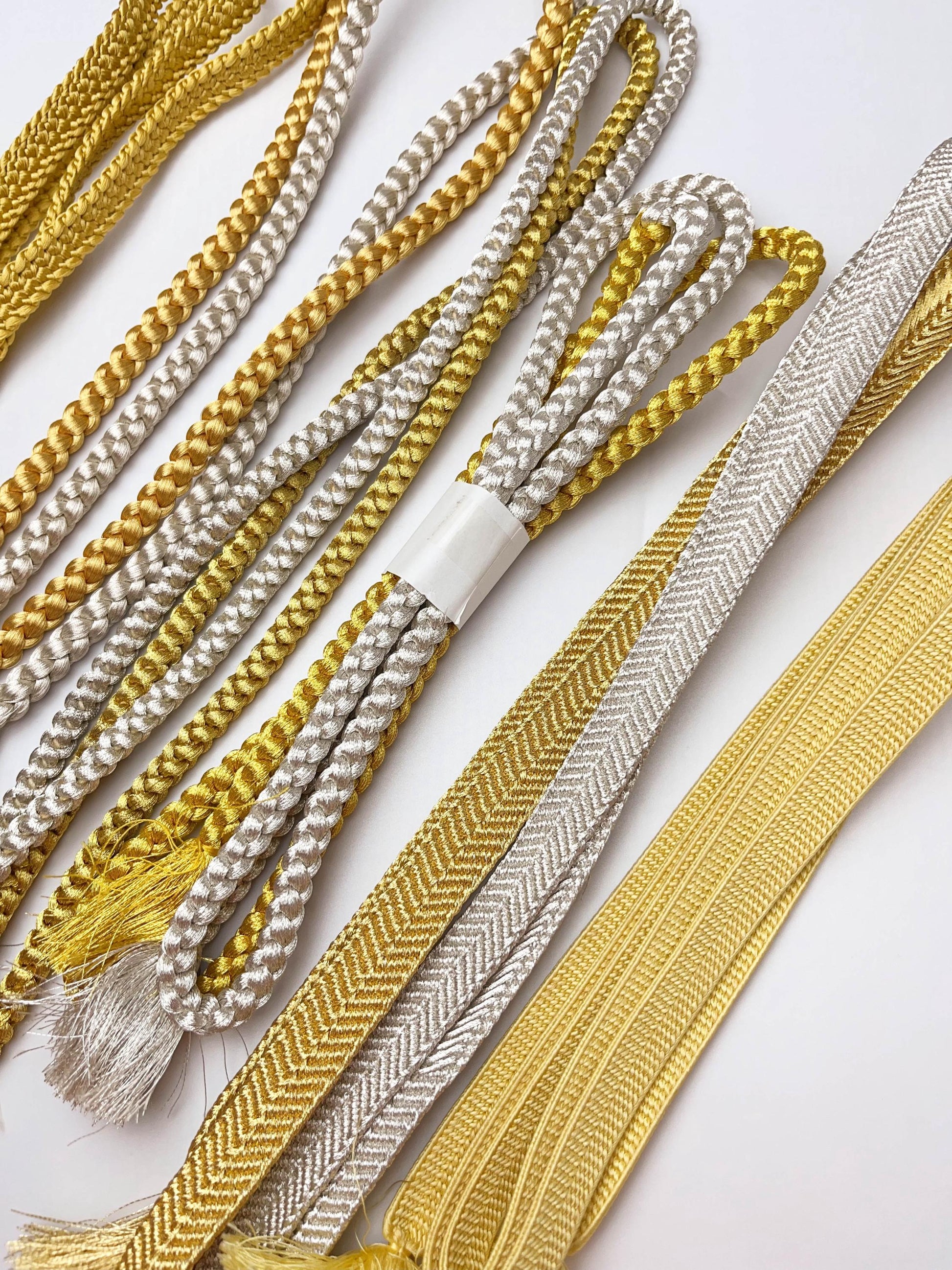 Gold & Silver Silk Obijime Cord: Japanese Kimono Obi Ties, Q9