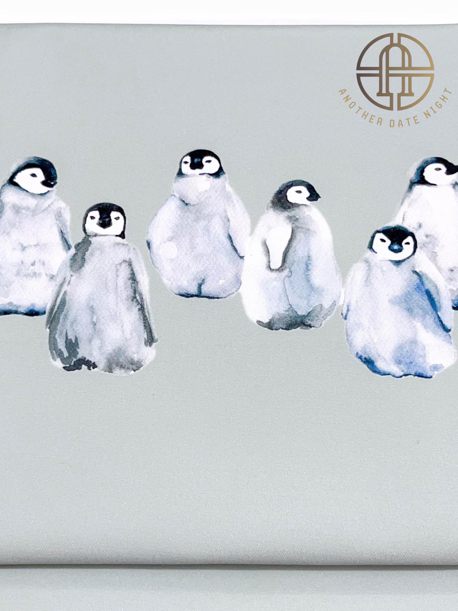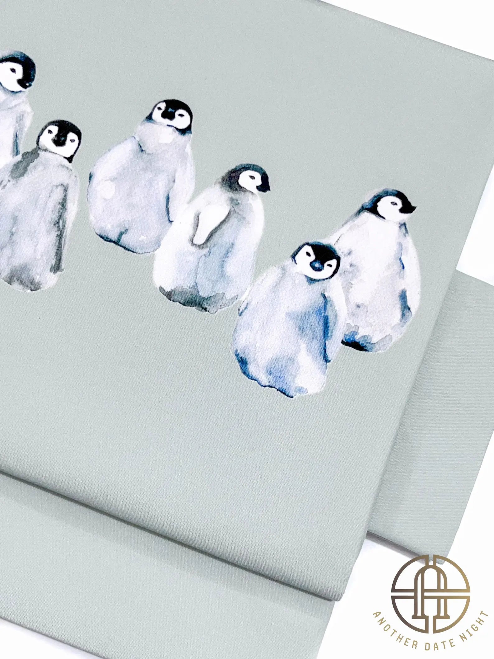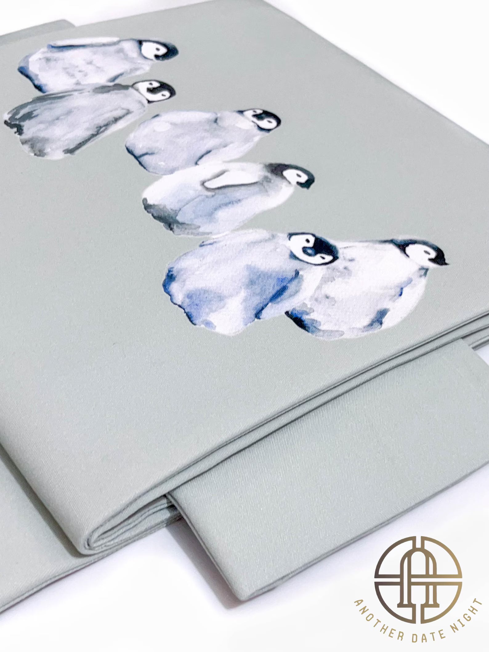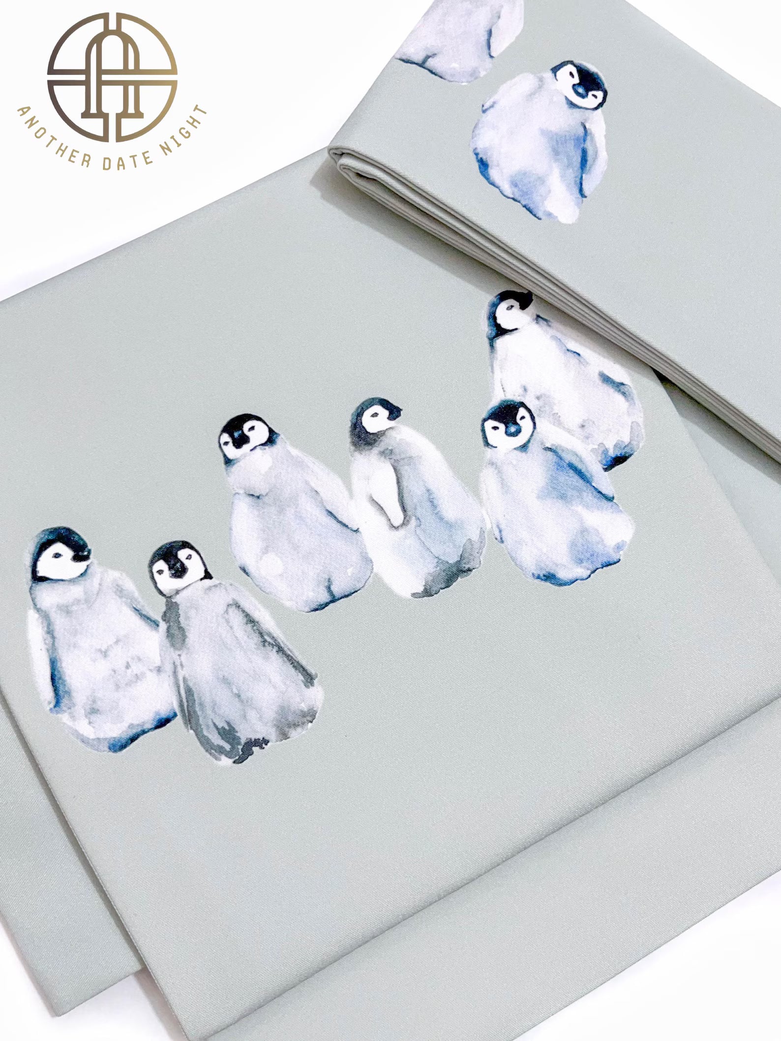 Gray-Green Obi with Cute Penguin Pattern, Pastel Green, Soft Green Easy Wear Obi, Ideal Tea Ceremony Sash