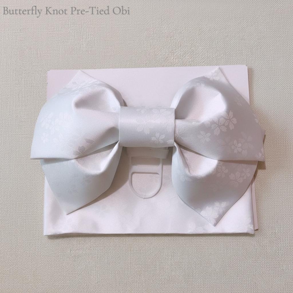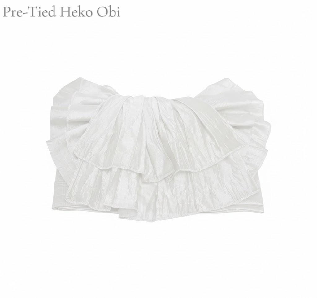 - White Pre-tied Heko Obi (Easy-wear): Width 1.45m
