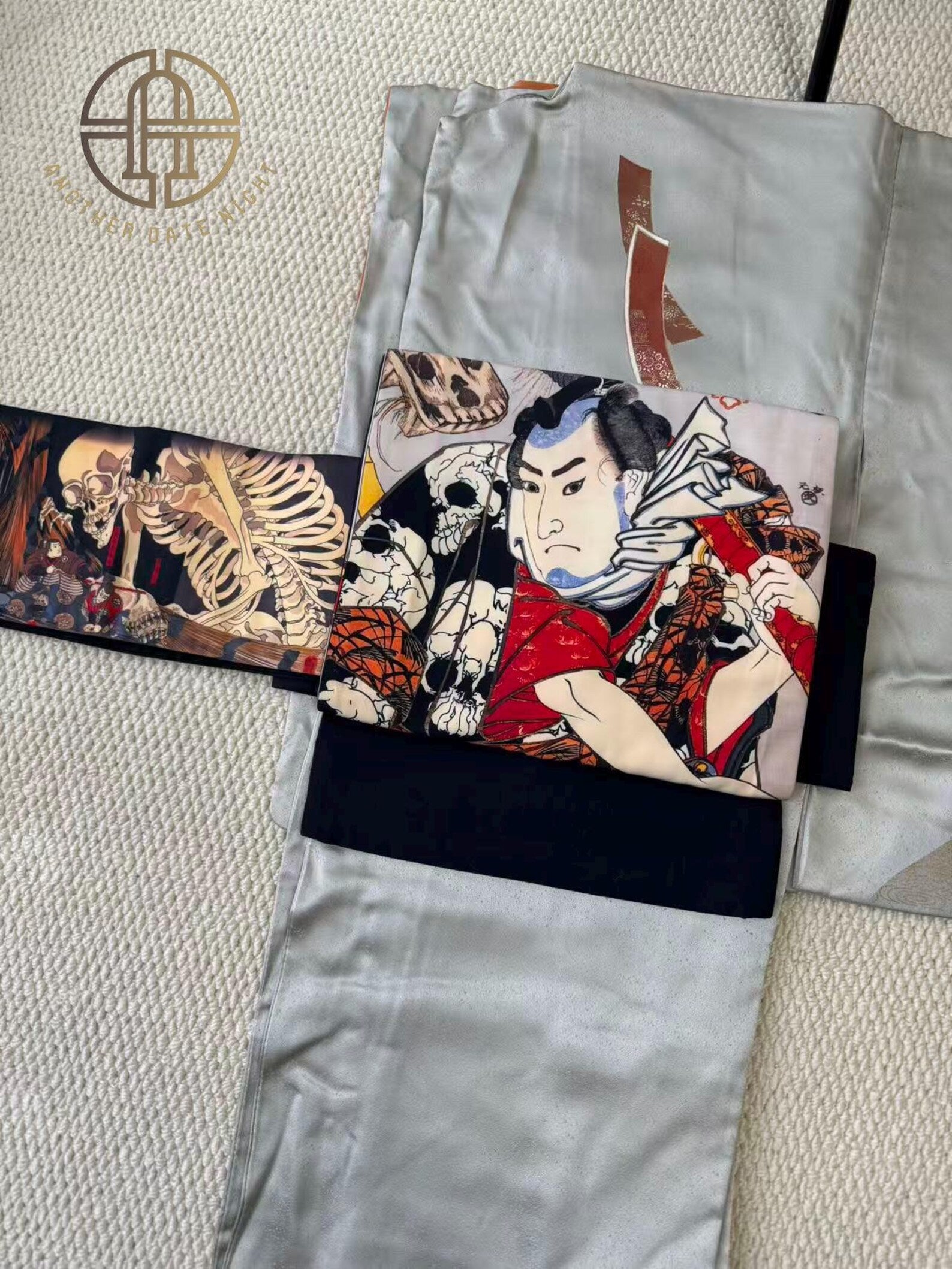 Takiyasha Witch Edo Period Ukiyo-e Obi, Pre-Tied Nagoya Tsuke Obi (Double Sided)