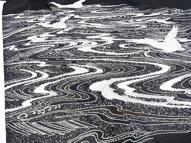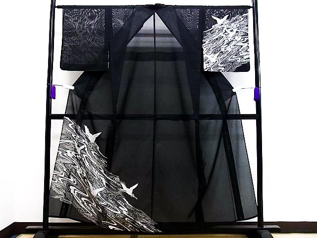 Vintage Houmongi Kimono with Crane Pattern, Ro Summer Kimono, Washable, Rank A-, B14