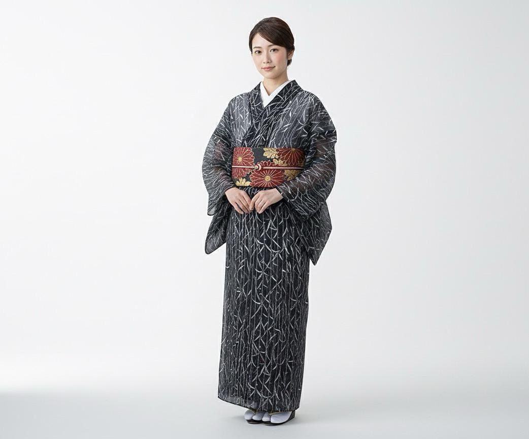 While the fabric itself is translucent and see-through, it is traditionally worn over a nagajuban (a thin silk or cotton under-kimono). This layering serves two purposes: